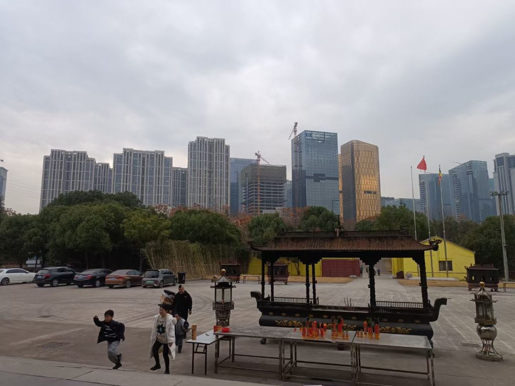 On the afternoon of May 13, 2024, the warm sun cast its slanting rays over the land of central Zhejiang. With deep reverence for this millennium-old temple, I made my way to Futian Temple, located at No. 509 South Shangbo Road, Phase V of the International Trade City, Yiwu City, Zhejiang Province. Nestled in the bustling core of Yiwu’s commodity economy, this temple stands as a tranquil haven with its blue tiles and red walls, shielding visitors from the outside hustle and bustle and emerging as a rare spiritual sanctuary in the urban landscape.